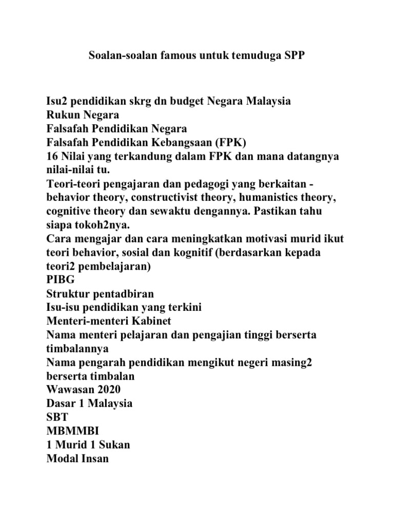 Soalan temuduga guru pendidikan. Oleh itu apabila anda bertemu dengan guru atau kakitangan ketahui jika ada falsafah tertentu yang mereka ikuti. Se dibahagikan kepada dua peringkat.
